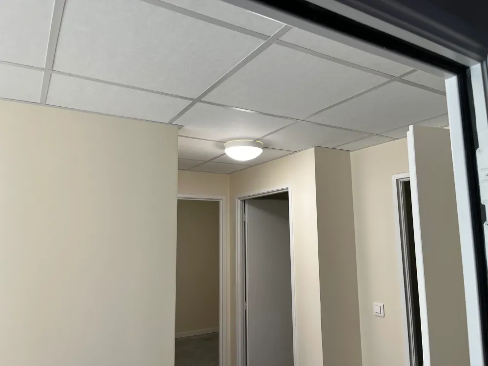 • Réalisation de plafonds suspendus en plaques de plâtre ou en dalles